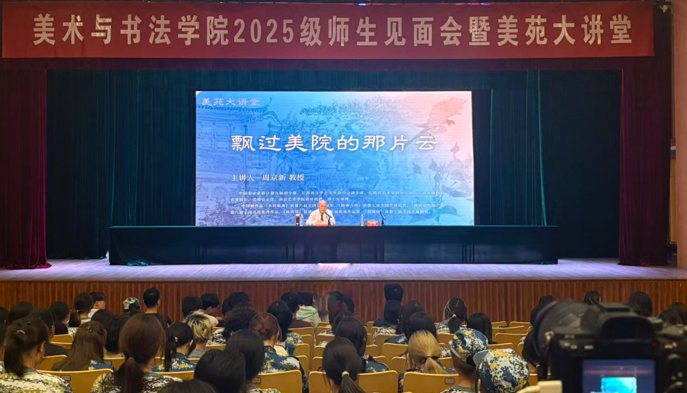 为深化新生专业素养、拓展学术视野,2025年9月22日,南京艺术学院美术与书法学院邀请南京艺术学院讲席教授、博士生导师周京新老师于南艺剧场举行2025级新生美苑大讲堂,学院2025级全体新生共同参与。会议由副院长刘春主持。现场氛围浓厚,师生收获颇丰。