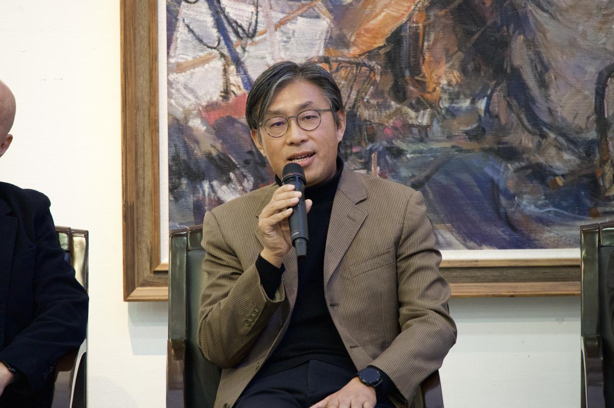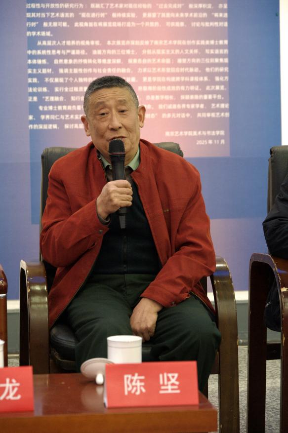 2025年11月23日下午2时,“创作时态”南京艺术学院2024级美术与书法专业博士研究生学年展之一油画专博展暨南京艺术学院美术与书法学院“新时代·新深美——油画专业博士研创沙龙”在南艺美院闳约美术馆举办。中国美术家协会副主席、江苏省美术家协会主席、南京大学教授、博士生导师陆庆龙,中国美术家协会国家重大题材美术创作艺委会委员、原南京军区政治部文艺创作室副主任陈坚,南艺美院院长、博士生导师、江苏省美术家协会副主席章文浩,江苏省美术馆原副馆长、江苏省美术家协会原副主席金田,南京师范大学教授、博士生导师封加樑,南京艺术学院研究生处副处长、博士生导师施煜庭,南艺美院教授、博士生导师黄鸣应邀参加沙龙活动。南艺美术与书法学院副院长、研究生导师、专业博士研创系列沙龙项目负责人刘春,美院油画系主任蓝剑,冯云、张健老师及南艺美院部分在读实践类专业博士、硕士研究生和本科生参与了此次活动。沙龙由美院副院长、博士生导师商勇主持。