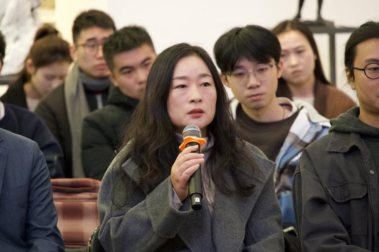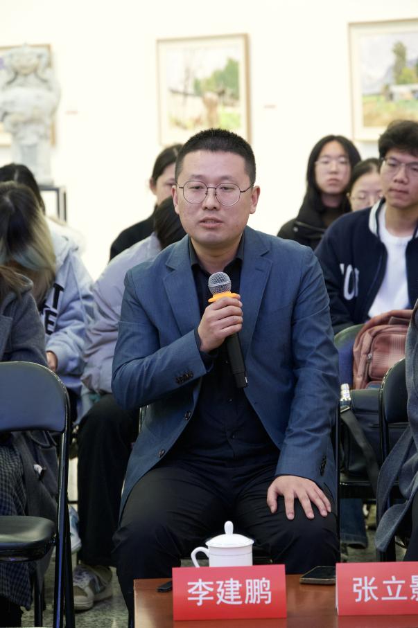 在互动对谈环节,油画专业博士研究生李建鹏、苏剑钊、张立影先后发言,他(她)们围绕自身实践成果,分别从现实主义的人文关怀、写实语言的本体锤炼、自然意象的抒情转化等创作维度,与现场专家交流并请教。美术与书法学院部分专业硕士生也与专家们进行了互动和提问,并表达了自己的一些感想。