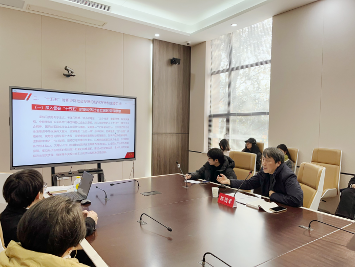 授课中,陈勇军围绕 “十五五” 时期战略定位展开深入阐释,强调这一时期作为实现2035年现代化目标的关键阶段,既是衔接 “十四五” 规划与远景目标的重要桥梁,也为教育事业与文艺发展指明了方向。他从指导方针、主要目标、战略任务及落实路径等多个维度,对全会精神进行全面解读,并结合学院办学实际,重点聚焦产教融合发展要求,提出教育需与产业深度衔接、教学内容紧跟行业前沿,以精准培育适应时代需求的高素质艺术人才。 同时,陈勇军结合美术与书法专业特性,重申文艺工作者 “以人民为中心” 的创作使命,强调扎根生活、贴近群众是艺术创作的生命力源泉,鼓励研究生党员在创作中坚守文化根脉、聚焦时代主题,用笔墨作品诠释责任担当。