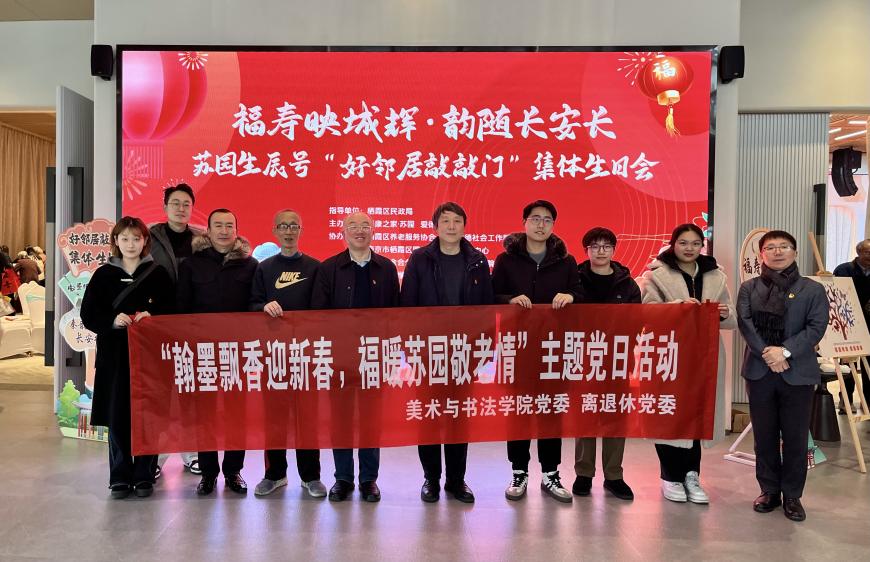 为传承中华优秀传统文化,践行敬老爱老传统美德,2025年12月31日上午,南京艺术学院美术与书法学院党委与离退休党委联合举办 “翰墨飘香迎新春,福暖苏园敬老情” 主题党日活动。两个单位的党员代表及书法专业师生走进泰康之家・苏园,以笔墨传情、以爱心暖人,为园区老人送上新春祝福与真挚关怀。