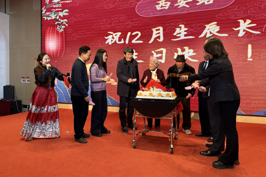与此同时,12月生日老人集体庆生仪式同步举行。美术与书法学院党委书记陈勇军代表活动主办方,向老人代表赠送精心书写的 “福” 字书法作品,随后与现场嘉宾、老人共同切开生日蛋糕,在温馨的祝福声中为寿星们送上双重喜悦,让老人们在辞旧迎新之际感受到家一般的温暖。
