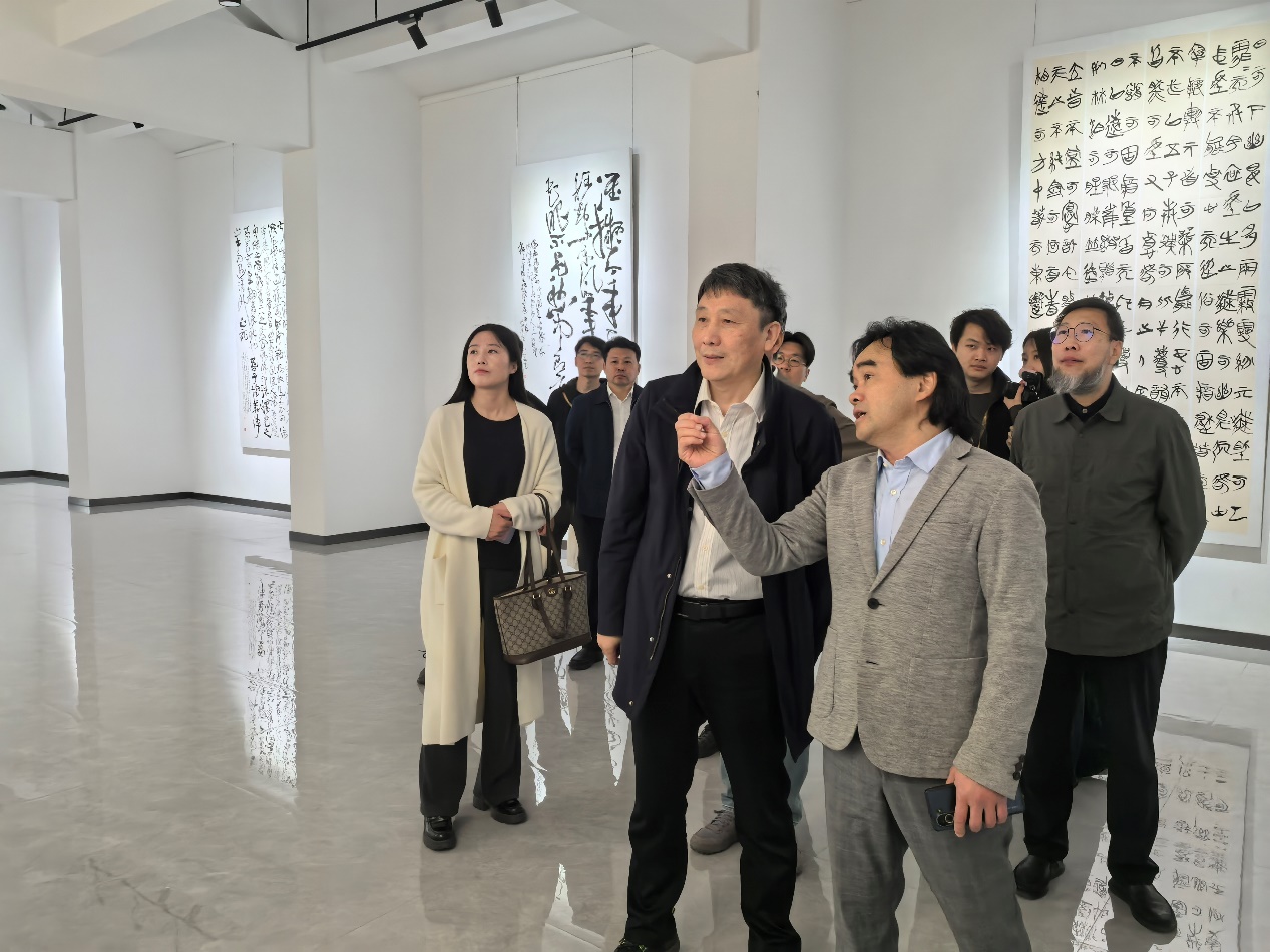 正值教工二支部党员教师朱友舟教授在永联美术馆举办“旧活计”古文字书法展暨新书分享会之际,学院将师德教育课堂搬到了展览现场。朱友舟教授将数十年深耕古文字研究的学术成果带入乡村,以高水平的艺术展览服务基层群众,不仅提升了乡村文化审美,更生动诠释了新时代高校教师“严谨治学、服务人民”的高尚师德。这一场景成为了学院“正风纪、养师德”教育的鲜活教材,彰显了党员教师扎根中国大地、坚持以人民为中心的创作导向。
